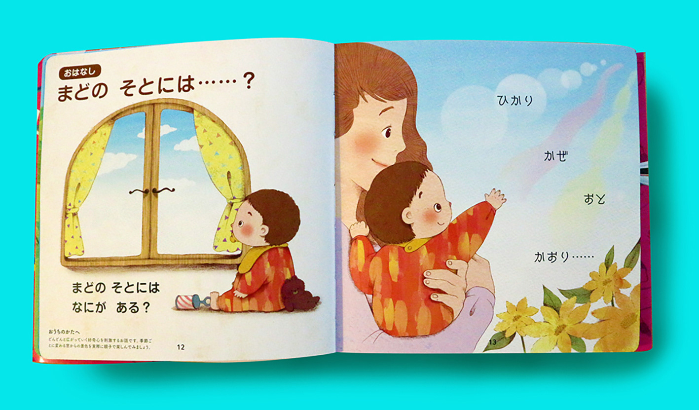 『0・1歳 あかちゃんあそびえほん』「まどの そとには……?」挿絵 CLT:株式会社 永岡書店