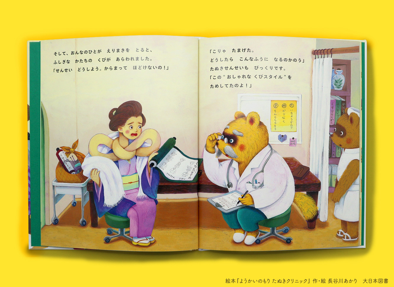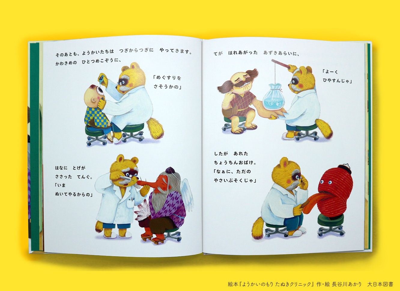 絵本『ようかいのもり たぬきクリニック』作・長谷川あかり 大日本図書株式会社 2022年6月初版発行